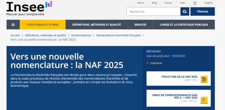 - Le 31 juillet 2025 -> publication du décret 2025-736 approuvant la NAF 2025.